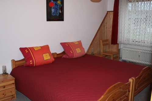Schlafraum: Kleiderschrank, 2 Betten, 2 Nachtschränke, 2 Stühle, 1 Radiowecker