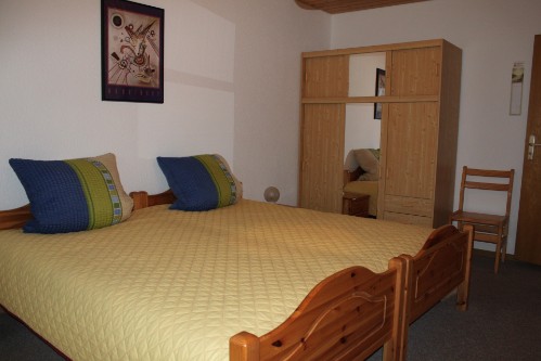 Schlafraum: Kleiderschrank, 2 Betten, 2 Nachschränke, 2 Stühle, 1 Radiowecker